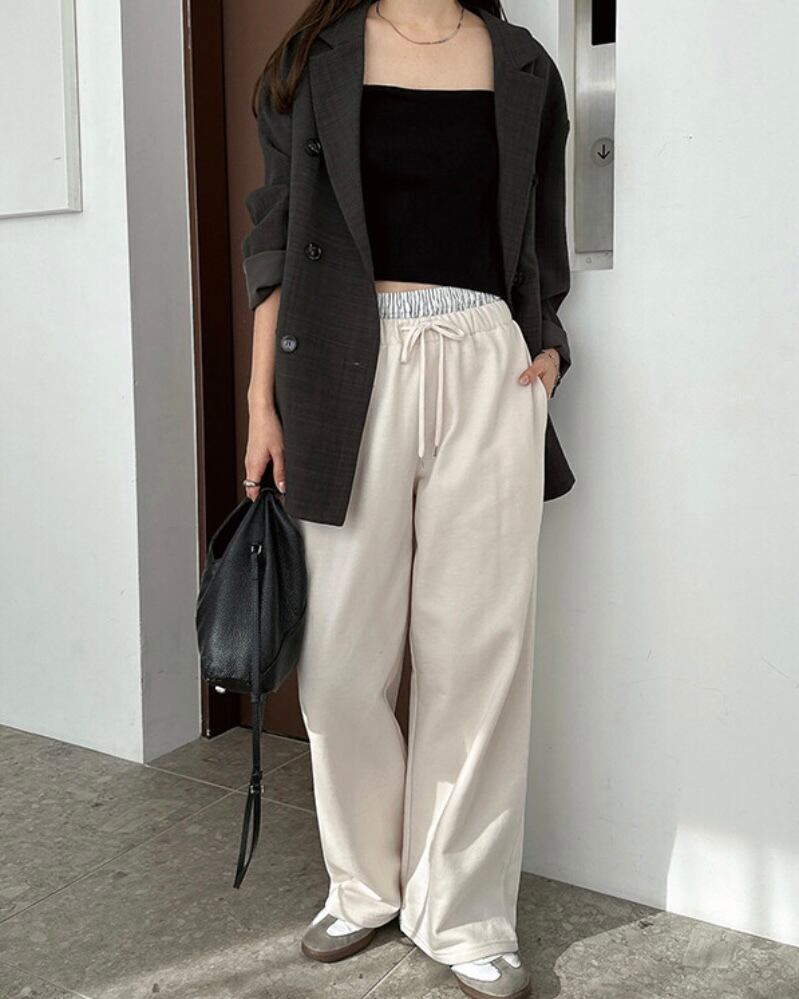 ショート丈のトップスに合わせてウエストのデザインを見せるスタイリングがおすすめです。