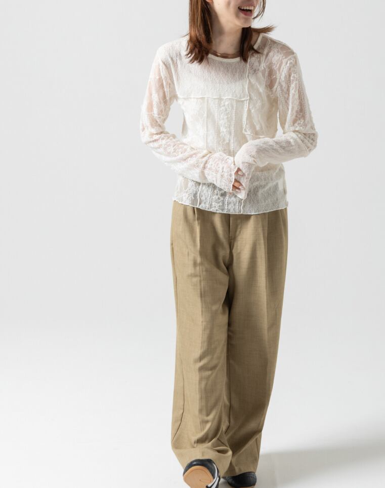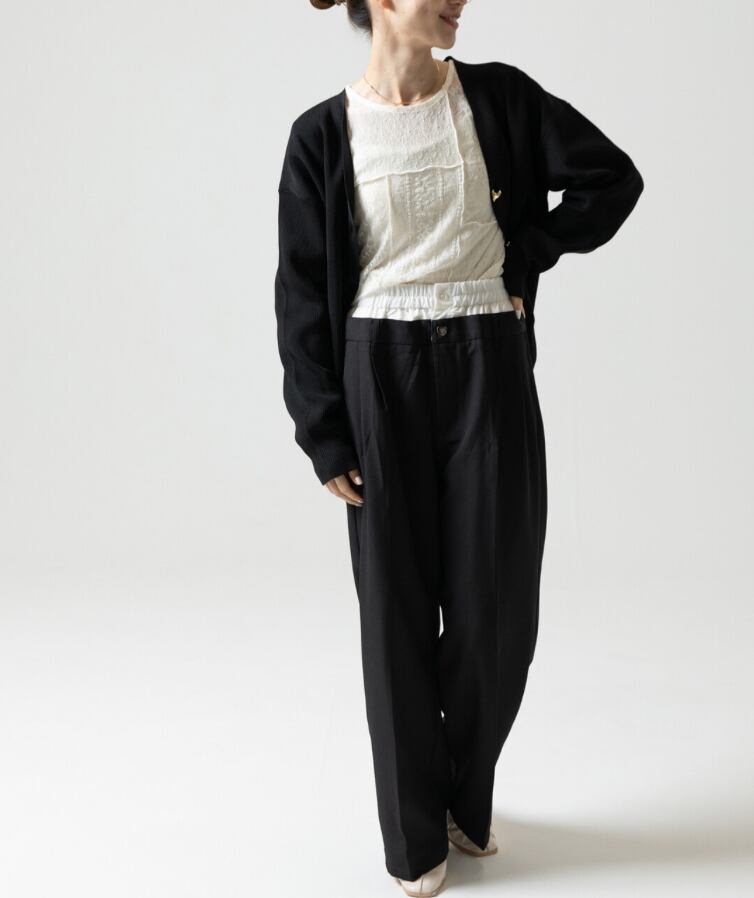 綺麗めなボトムスとの相性はもちろん、肌寒い季節にはチラ見せインナーとしてもオススメです。