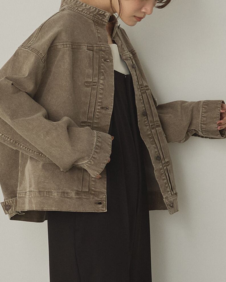 スタンドカラーで、大人っぽくスッキリしたオーバーサイズGジャン。