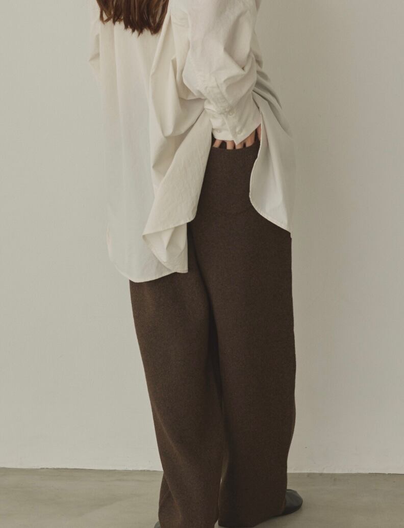 肌触りの良いニット素材で、ずっと履いていたくなる履き心地のニットパンツ。
