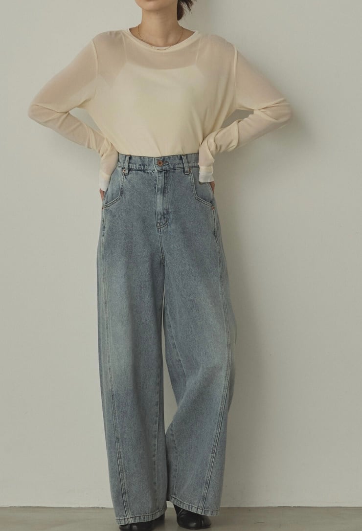 サイドから裾中心に向けて切替を入れることで、スタイルアップが可能なデニムパンツ。