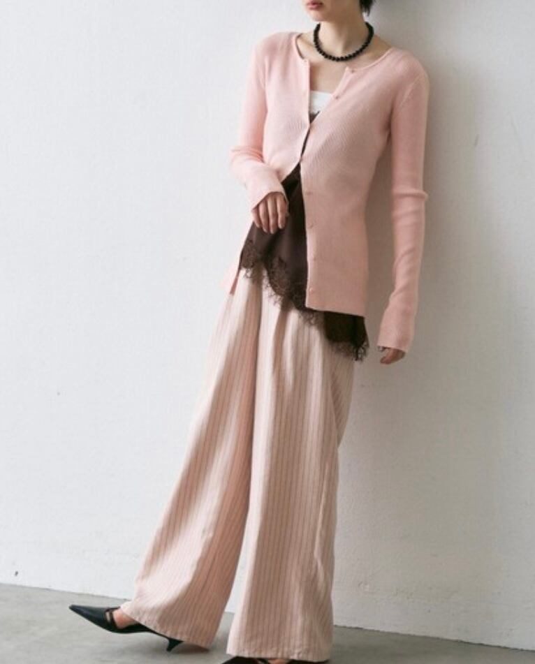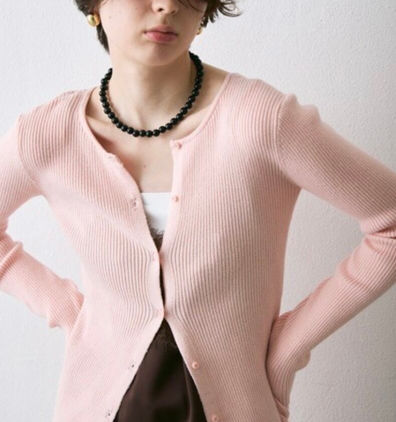 柔らかく、肌触りの良い薄手のニット素材を使用したニットカーディガン。