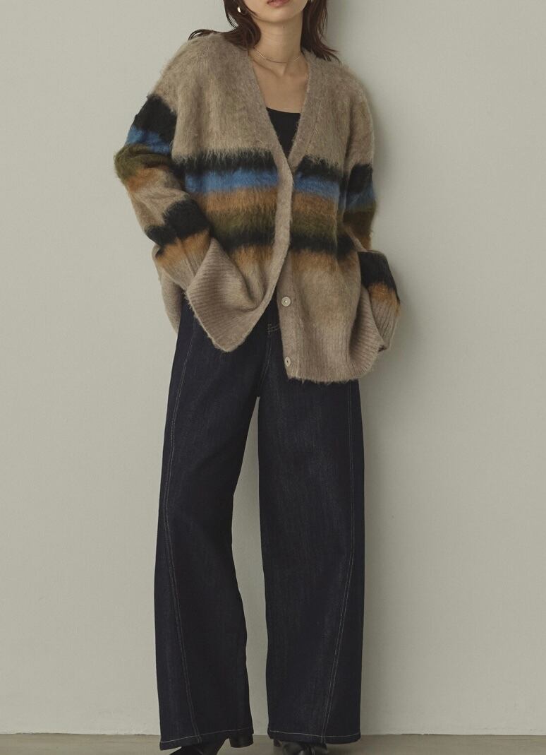 デザイン性のあるカーディガンなので、インナー、ボトムはシンプルでもこなれたコーデに。