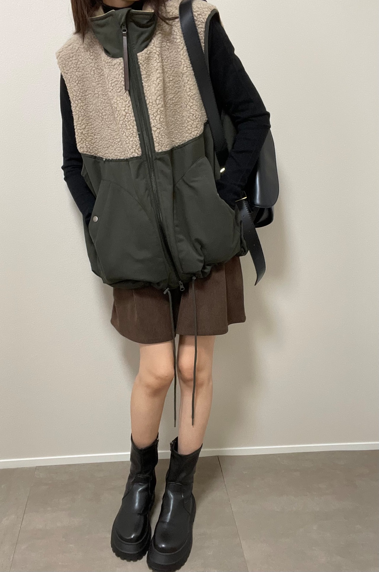 ふんわりとしたボア素材と中綿のコンビネーションが、温かさとおしゃれさを両立させてくれるベスト。
