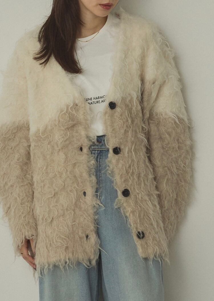 ウール混のふわっと空気感を含んだ糸を使用した色々なカラーがミックスされたカーディガン。