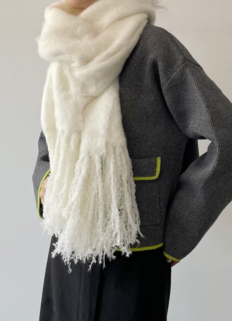 どんなアウターにも合わせやすく、使いやすいデザインで、巻き方を変えたり様々なスタイリングを楽しめます。
