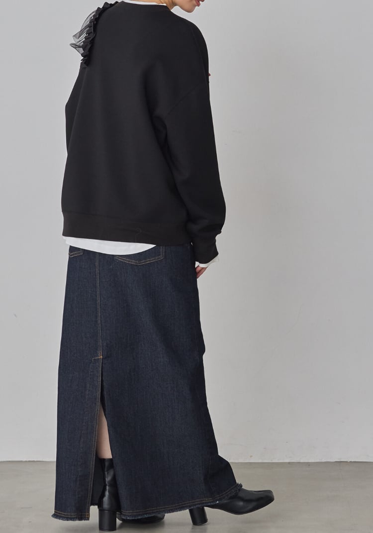 シンプルにTシャツ合わせはもちろん、リメイクカジュアル風なので、シアーや春っぽくレースなど甘めのアイテムとも相性◎。