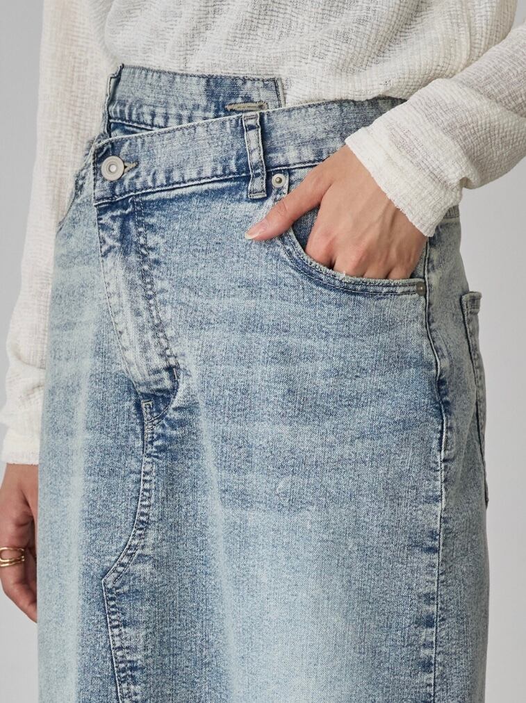 リメイク風のデザインが、何気ないコーデも今っぽく仕上げてくれるデニムスカート。