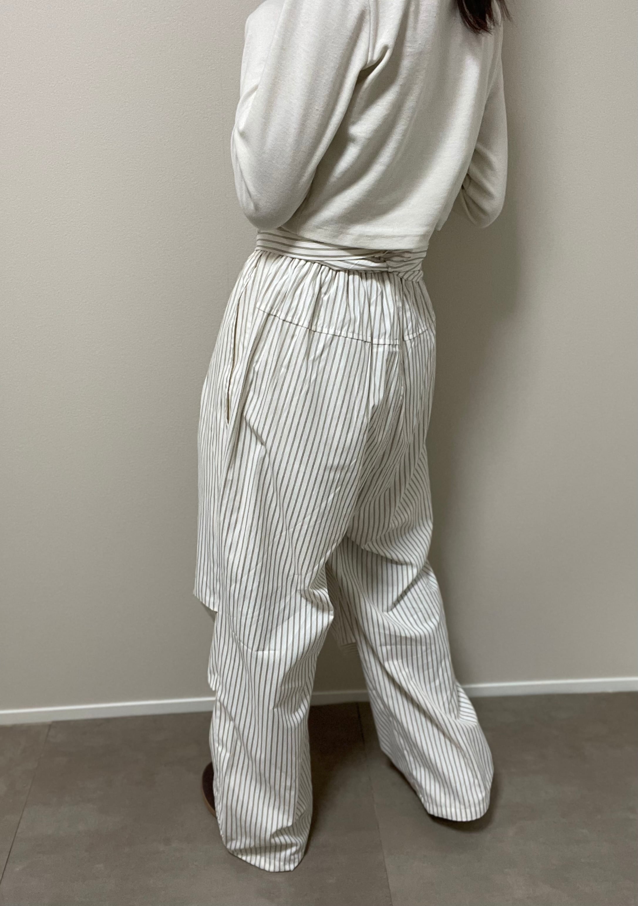2way腰巻きストライプツイルパンツ
