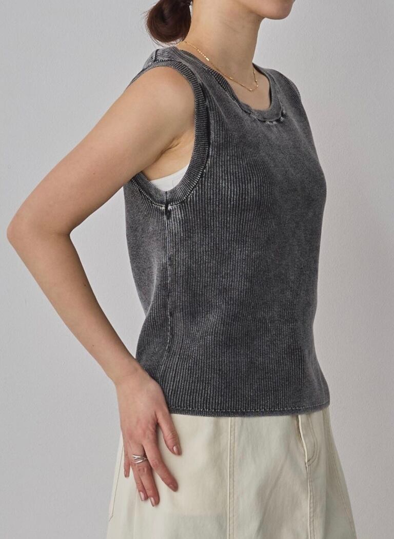 ヴィンテージライクなストーンウォッシュ加工がポイントで、絶妙なフェード感と雰囲気のある着回し力抜群なリブタンク。