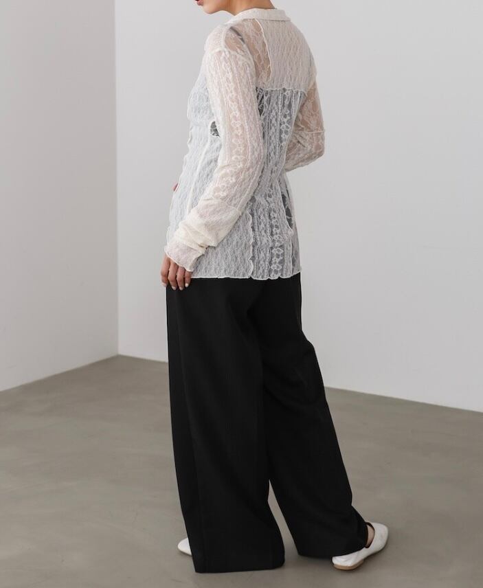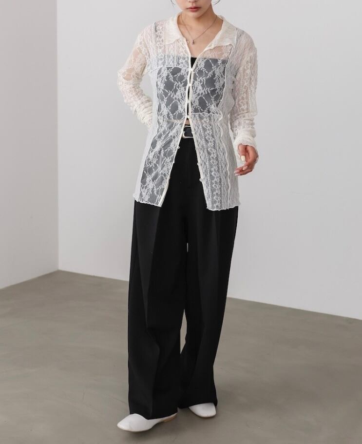 インナーにキャミソールやタンクを合わせて、透け感を楽しむスタイリングや、カーディガンなどとあわせてレイヤードにも。