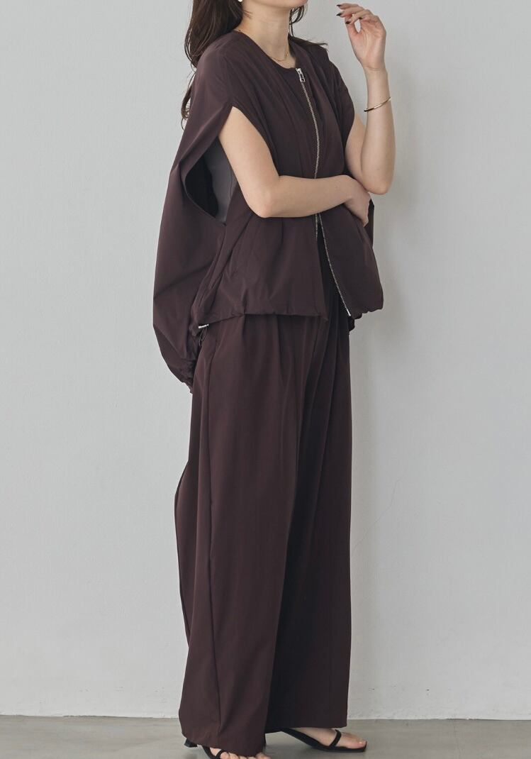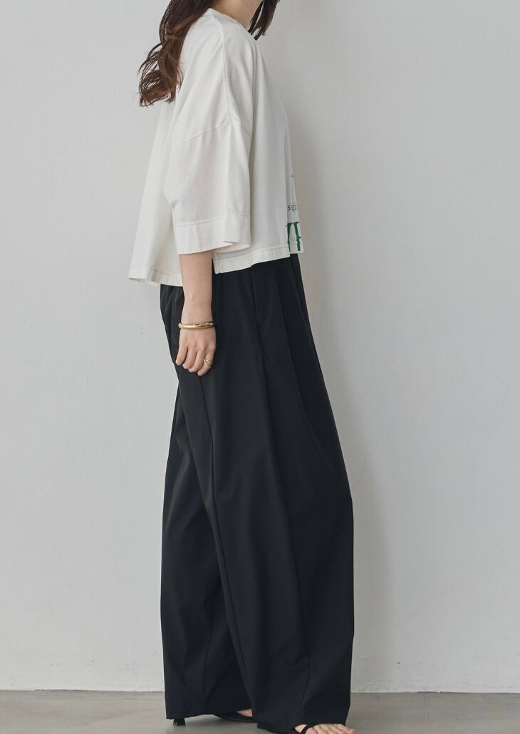 フロントにはタックを施し、前後には切替を入れ、立体感のある綺麗なシルエットに。