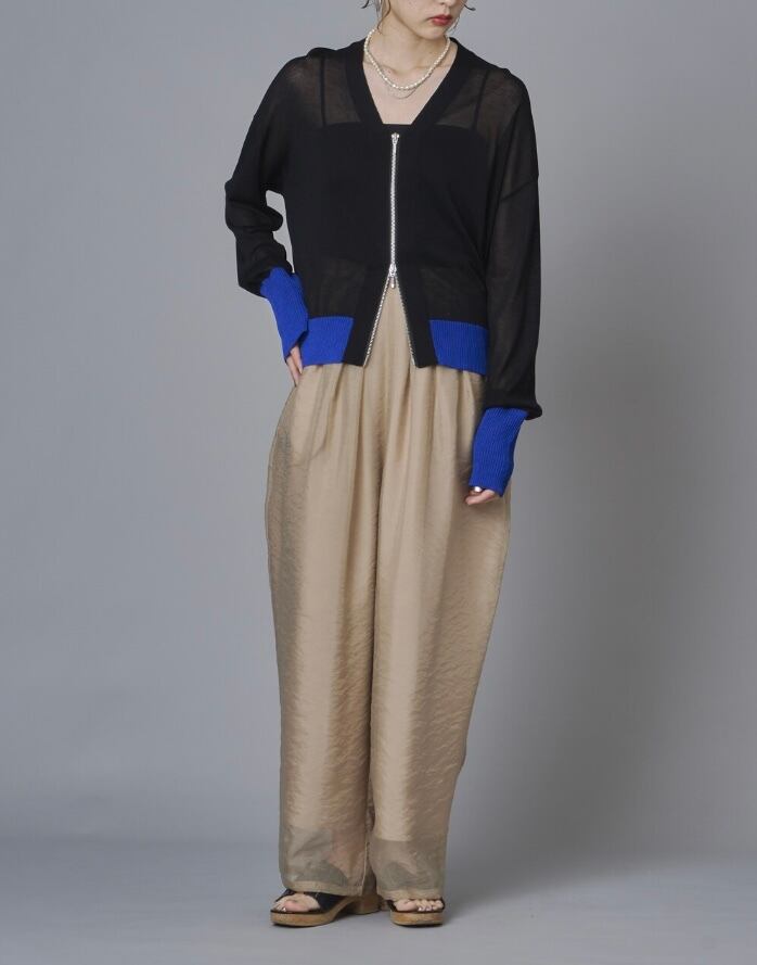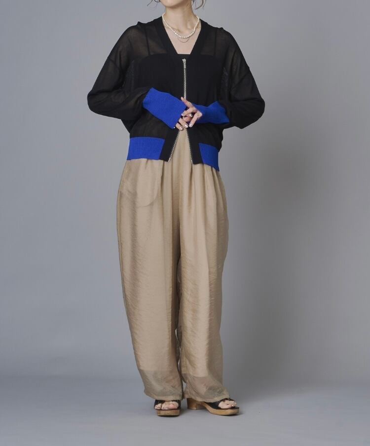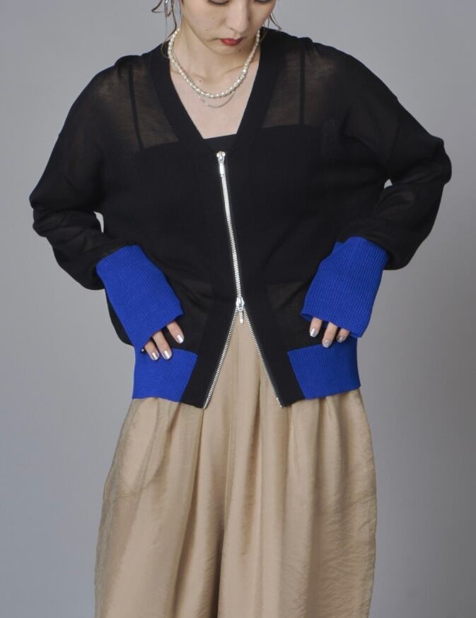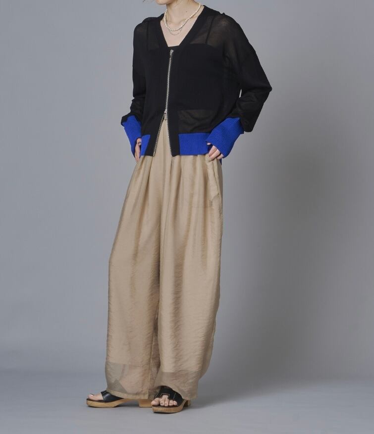 ひんやり清涼感のある肌触りの糸を使用したニットカーディガン。