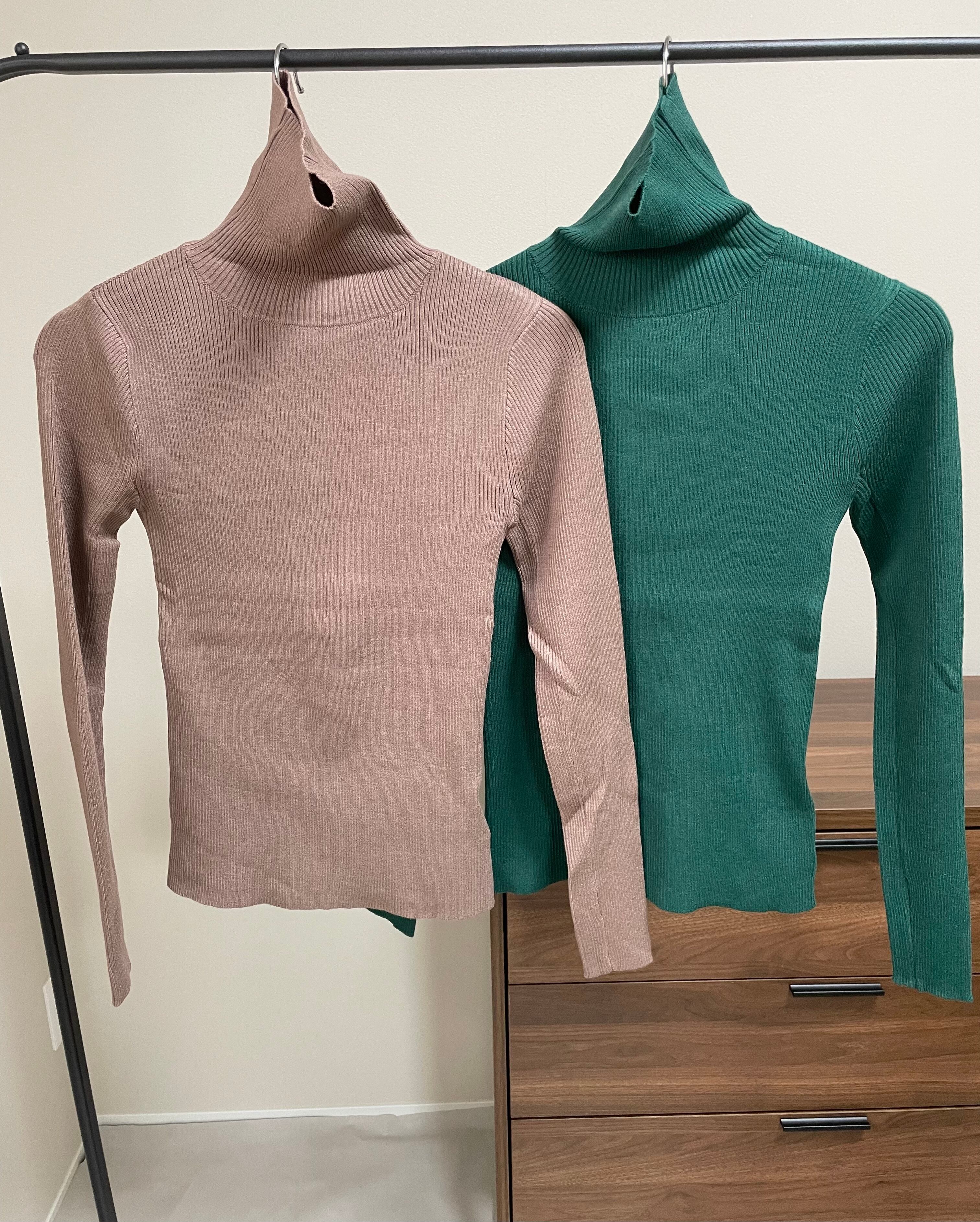 指穴ハイネックリブニット / green