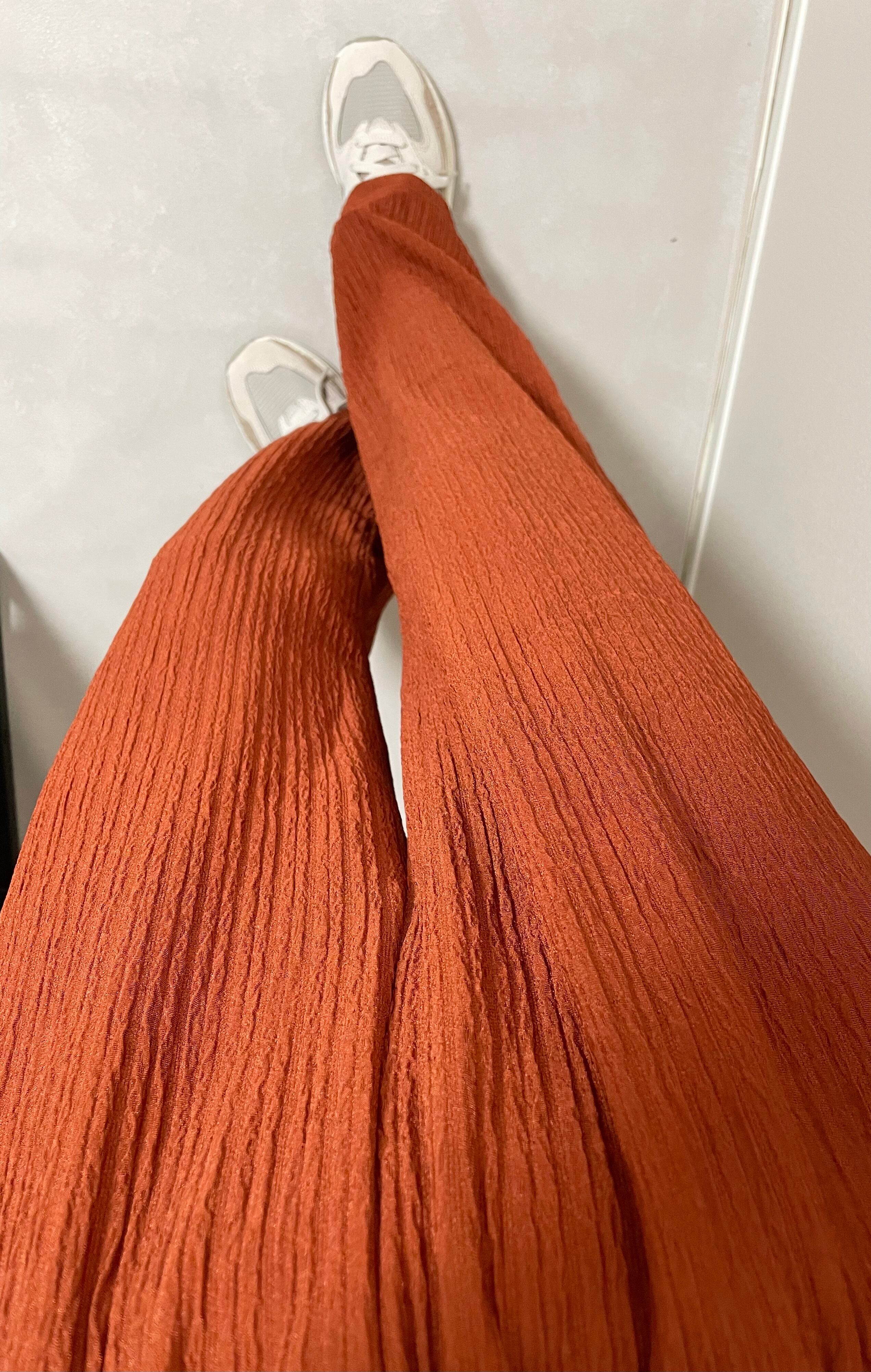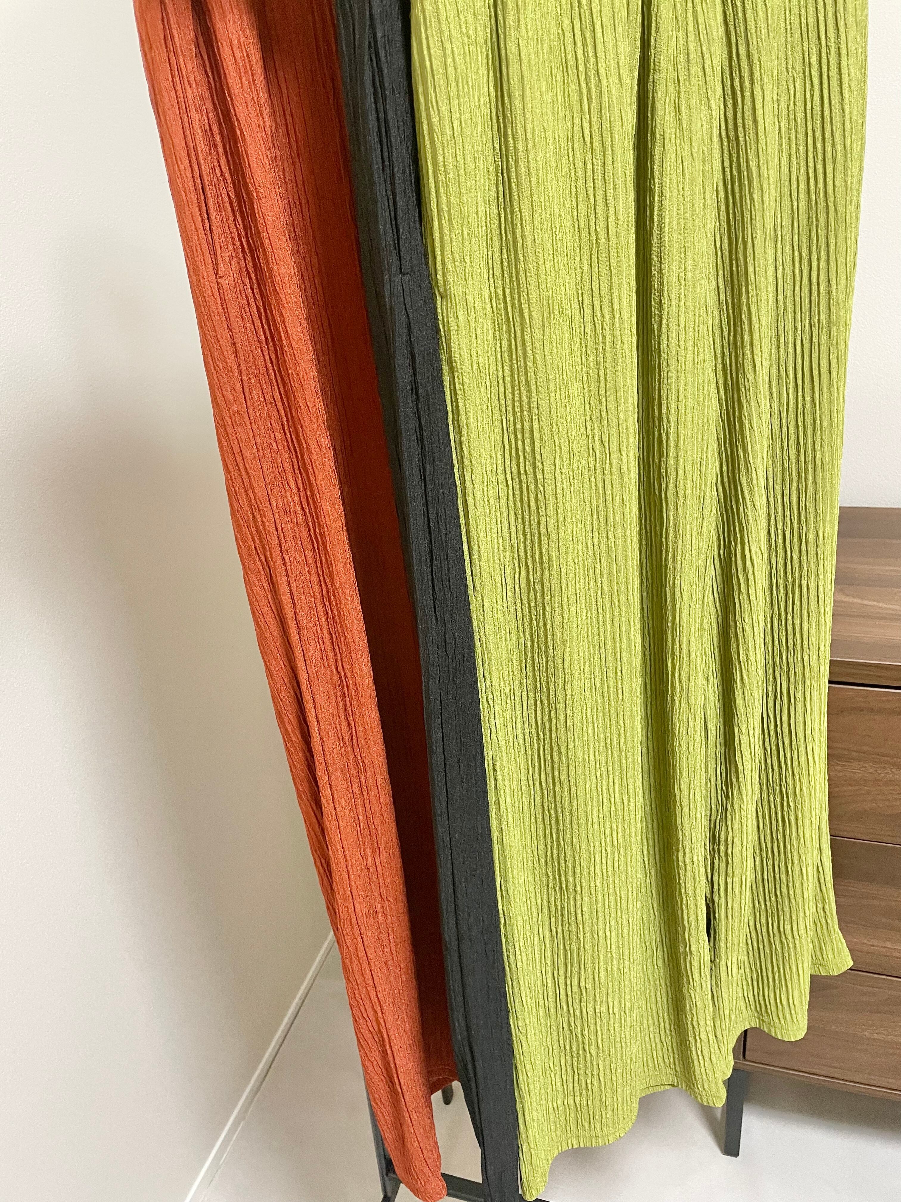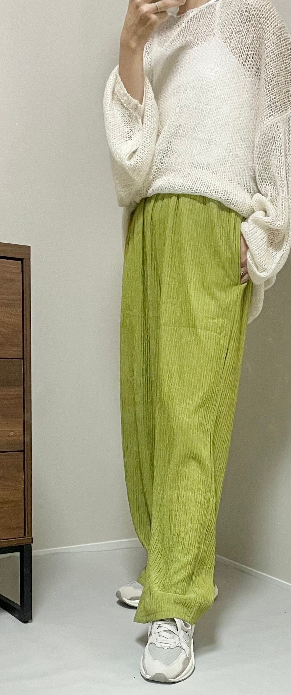 プリーツデザインが脚を綺麗に長く魅せてくれるラフパンツ。ウエストは総ゴムで、動きやすく、ポケット付きが嬉しいデイリーユースしやすいのが魅力です。