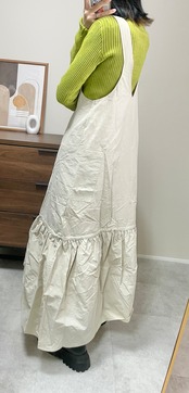 肩紐が調整可能で身長問わずお使いいただけるジャンパースカート。