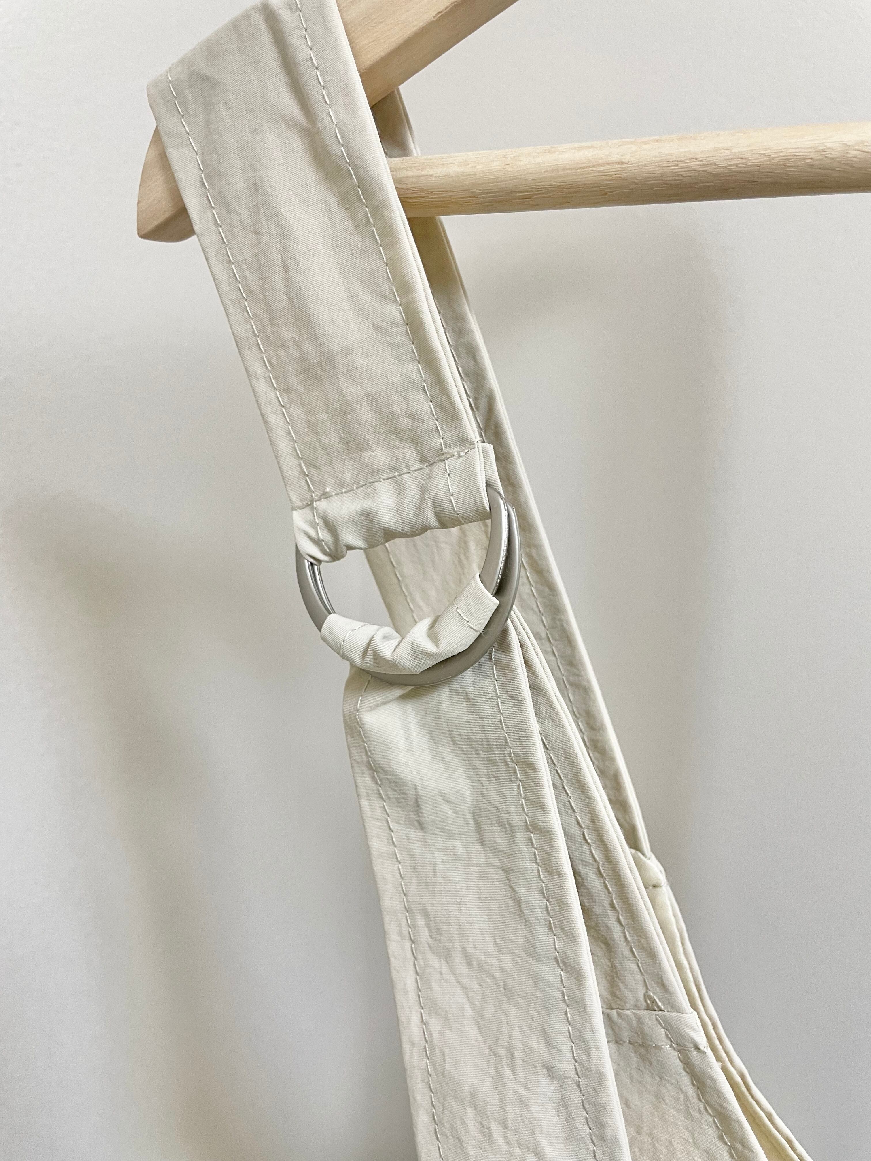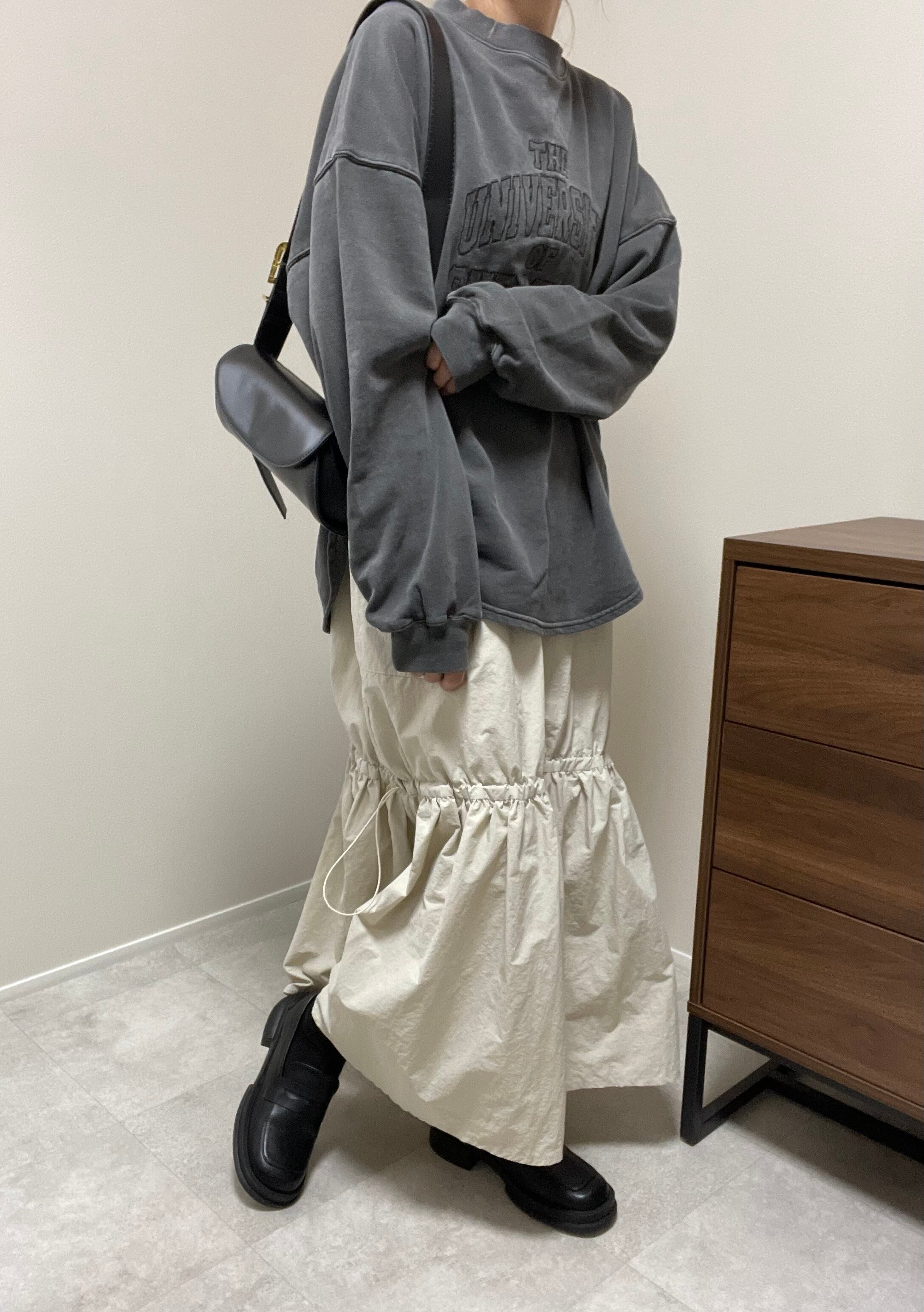 ナイロン特有のシャカシャカした肌触りでハリ感があり、通年通してお使いいただけるデザインと素材で、インナー次第で様々なコーディネートが楽しめます。