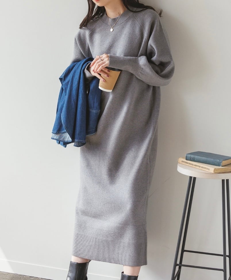 スウェットのような快適な着心地で、ラフな印象で着用頂けるニットワンピ—ス。