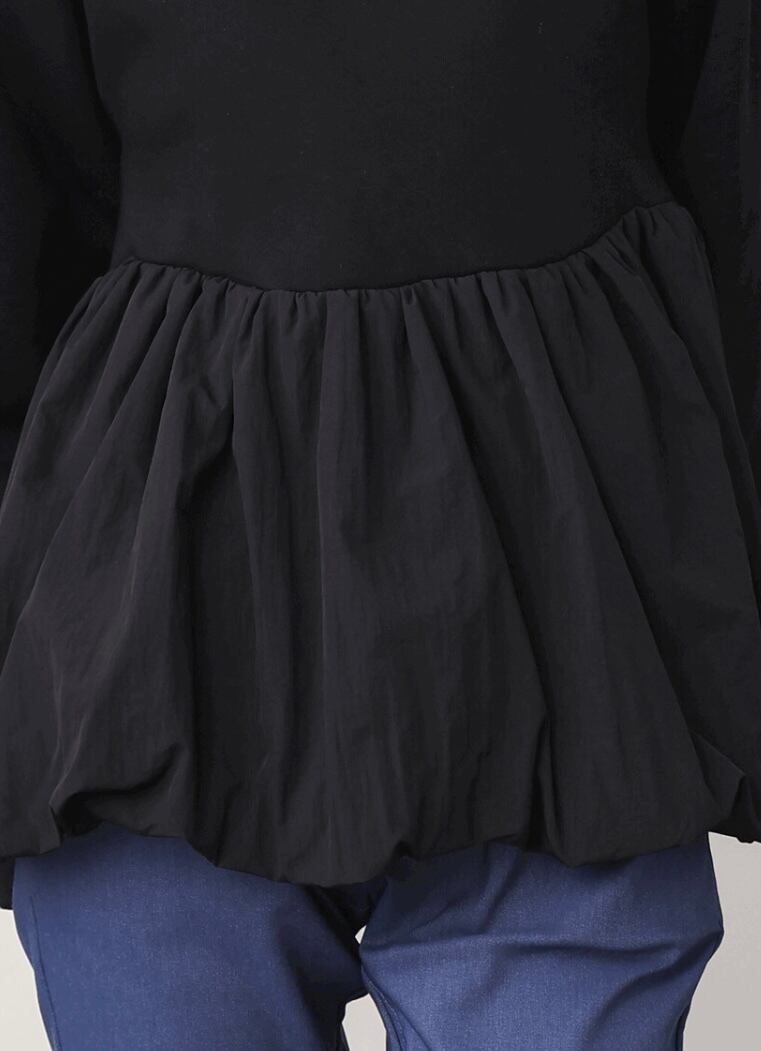 ペプラム部分はマットなタフタ素材を使用し、バルーン仕様になっています。